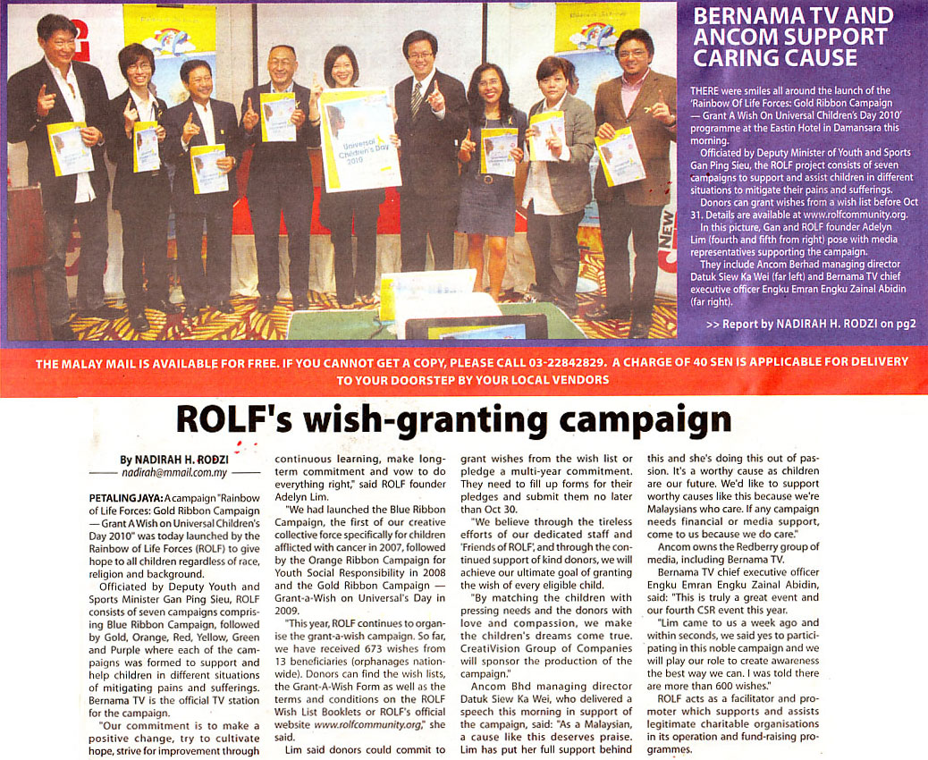 By supporting ROLF campaign, the real beneficiary is me because when I try to touch the hearts of the children, it is my own heart that is being touched by these children. I’m pledging my support to the Gold Ribbon Campaign.