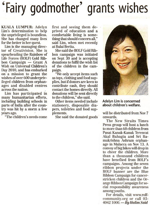 By supporting ROLF campaign, the real beneficiary is me because when I try to touch the hearts of the children, it is my own heart that is being touched by these children. I’m pledging my support to the Gold Ribbon Campaign.