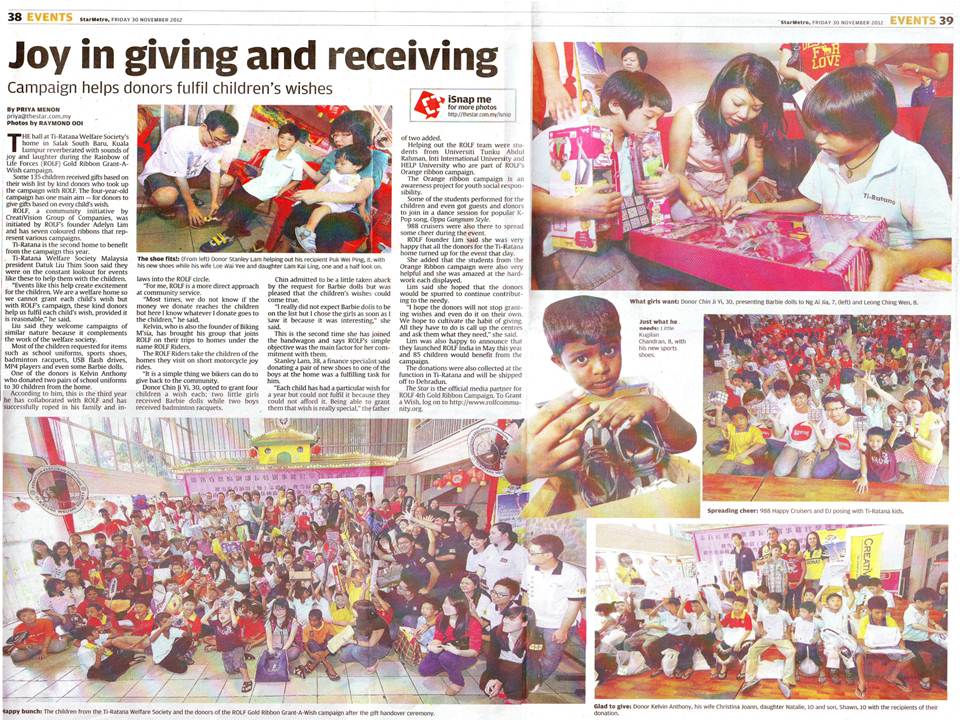 By supporting ROLF campaign, the real beneficiary is me because when I try to touch the hearts of the children, it is my own heart that is being touched by these children. I’m pledging my support to the Gold Ribbon Campaign.