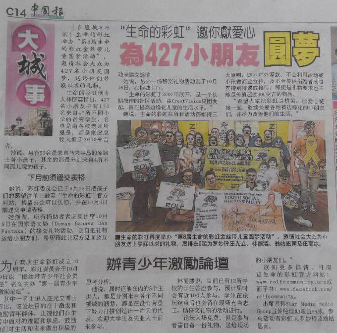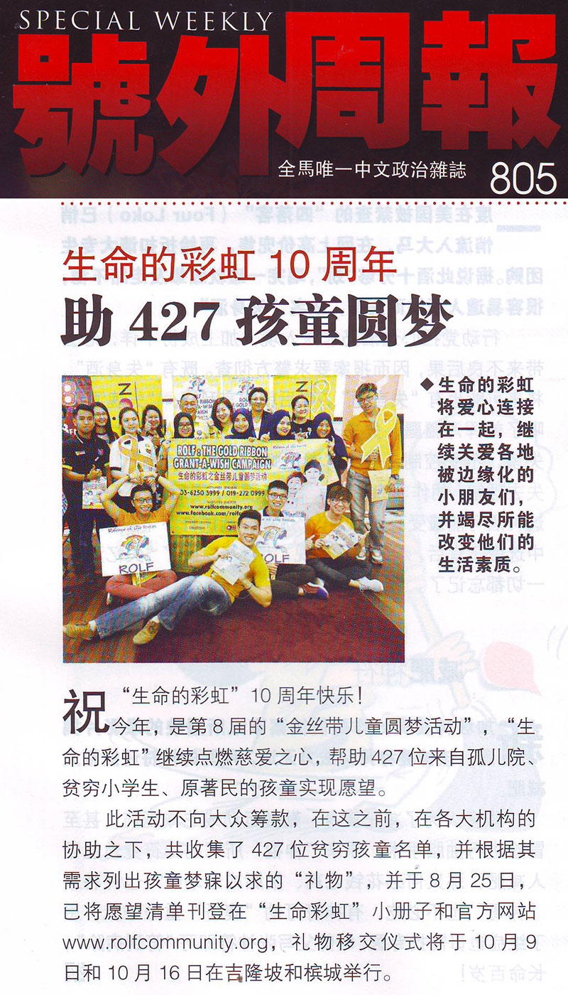 By supporting ROLF campaign, the real beneficiary is me because when I try to touch the hearts of the children, it is my own heart that is being touched by these children. I’m pledging my support to the Gold Ribbon Campaign.