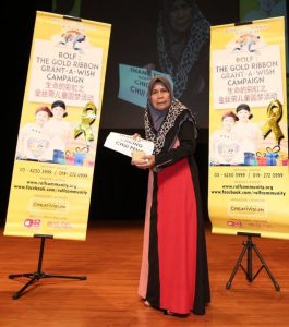 By supporting ROLF campaign, the real beneficiary is me because when I try to touch the hearts of the children, it is my own heart that is being touched by these children. I’m pledging my support to the Gold Ribbon Campaign.